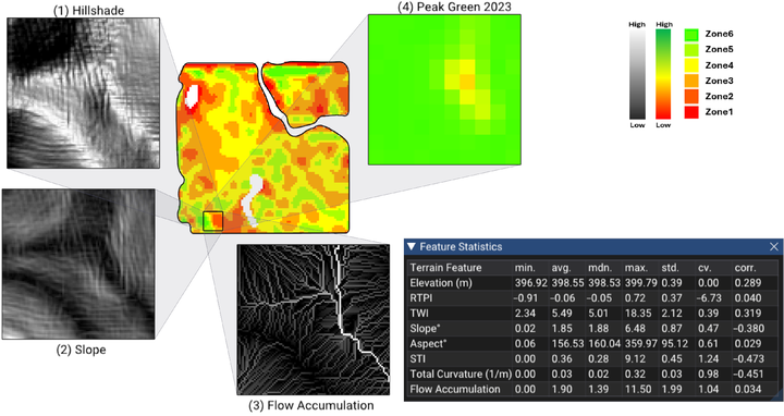 Understanding spatial variability is central to precision agriculture, yet terrain features are often overlooked in remote sensing workflows that inform agronomic decision-making. This work introduces a terrain-aware visual analytics approach that integrates landform classification with crop performance analysis to better support field-level decisions. Terrain features are an important contributor to yield variability, alongside environmental conditions, soil properties, and management practices. However, they are rarely integrated systematically into performance analysis and decision-making workflows—limiting the potential for terrain-aware insights in precision agriculture. Addressing this gap requires approaches that incorporate terrain attributes and landform classifications into agricultural performance analysis and management zone (MZ) delineation—ideally through visual analytics that offer interpretable insights beyond the constraints of purely data-driven methods. We introduce an interactive focus+context visualization tool that integrates multiple data layers—including terrain features, vegetation index–based performance metric, and management zones—into a unified, expressive view. The system leverages freely available remote sensing imagery and terrain data derived from Digital Elevation Models (DEMs) to evaluate crop performance and landform characteristics in support of agronomic analysis. The tool was applied to eleven agricultural fields across the Canadian Prairies under diverse environmental conditions. Fields were segmented into depressions, hilltops, and baseline areas, and crop performance was evaluated across these landform groups using the system’s interactive visualization and analytics. Depressions and hilltops consistently showed lower mean performance and higher variability (measured by coefficient of variation) compared to baseline regions, which covered an average of 82% of each field. We also subdivided baseline areas using slope and the Sediment Transport Index (STI) to investigate soil erosion effects, but field-level patterns were inconsistent and no systematic differences emerged across all sites. Expert evaluation confirmed the tool’s usability and its value for field-level decision support. Overall, the method enhances terrain-aware interpretation of remotely sensed data and contributes meaningfully to refining management zone delineation in precision agriculture.
